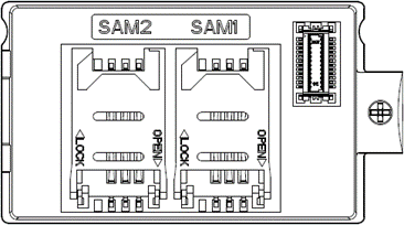 Certain configurations of the IM30 will have a 4G network module, in these configurations you can install a SIM card. Unscrew the 4G network module and remove it to reveal the SIM card slot on the bottom of the module. Push the card into the slot with the contacts facing up and the clipped corner of the card facing towards the module. Certain configurations of the IM30 will have physical SAM card slots available, you may install SAM cards in a similar manner to the SIM cards (make sure to use the appropriate card slots as indicated in the figure above.