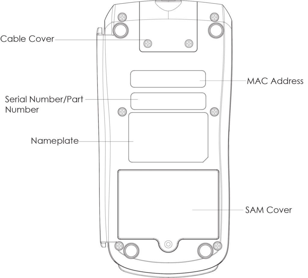 - Remove SAM cover on back of terminal.