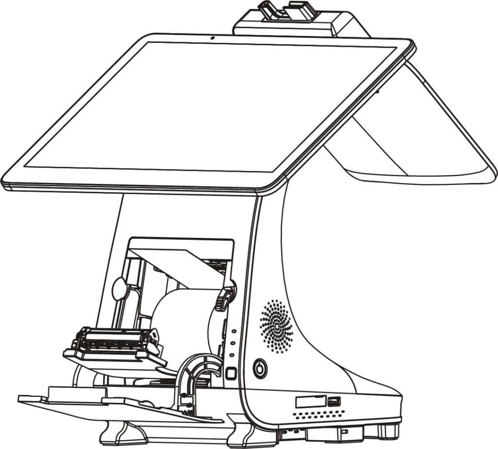 3. Load the paper roll into the compartment and extend the end of the paper out of the printer.
