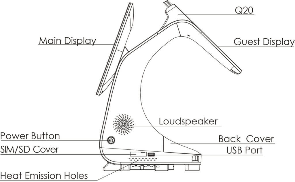 The Q20 on the consumer-facing side of the E800 includes a reader that can be used as a Magnetic Stripe, EMV, and NFC/Contactless card reader.