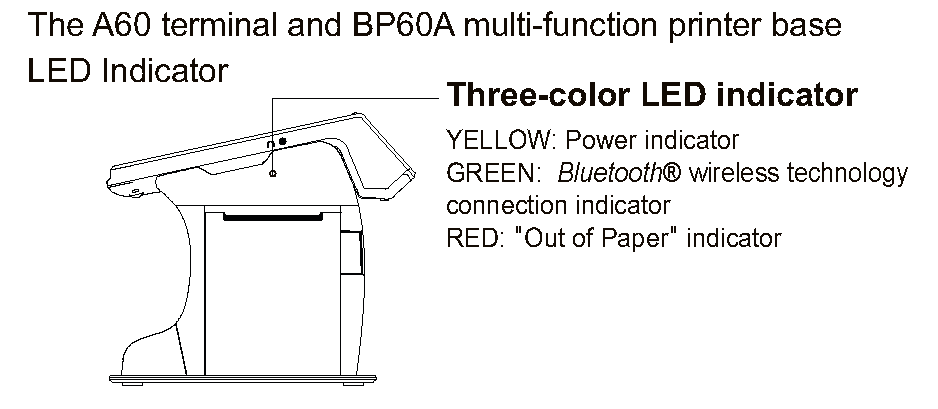 - It is possible to support up to seven A60 terminals connected to the base printer utilizing Bluetooth® wireless technology. Receipts will be printed one by one.