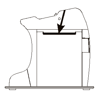 - When the printer is out of paper, the red “Paper Out” indicator lights up. Press the button on the right of the printer to open the cover.