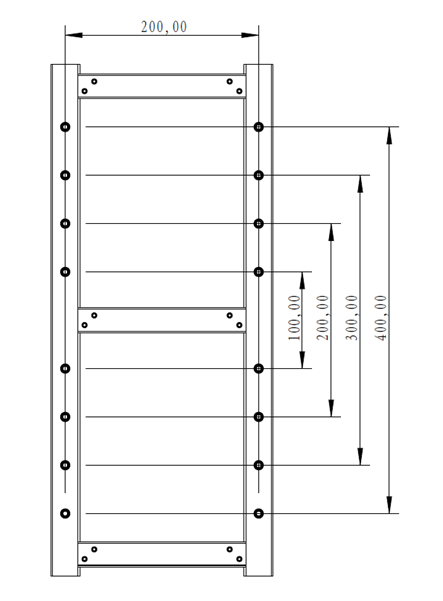 1. Use the six M6-50 expansion screws to attach the bracket onto the wall. (Note: Use an 8.0 mm diameter drill bit to drill holes in the wall according to the position of the bracket fixing hole. Hole diameter is 8.0mm, Hole depth is above 60.0mm.)