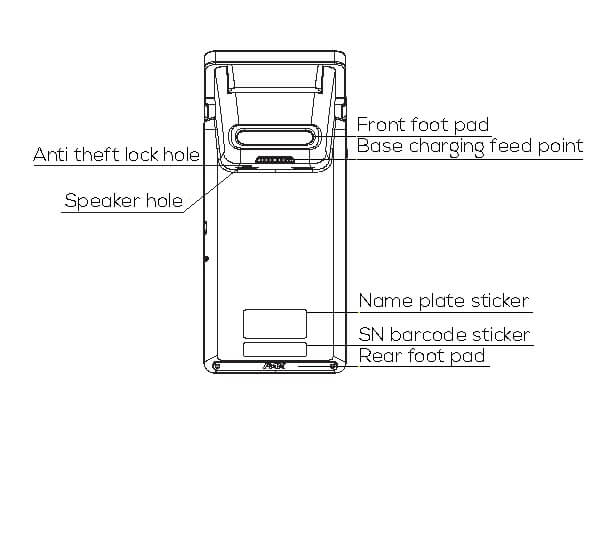 The base is mainly used for the host’s port expansion. Gently align and place the E600Mini terminal on the base. When the base’s network interface is connected, the E600Mini host will automatically switch the data